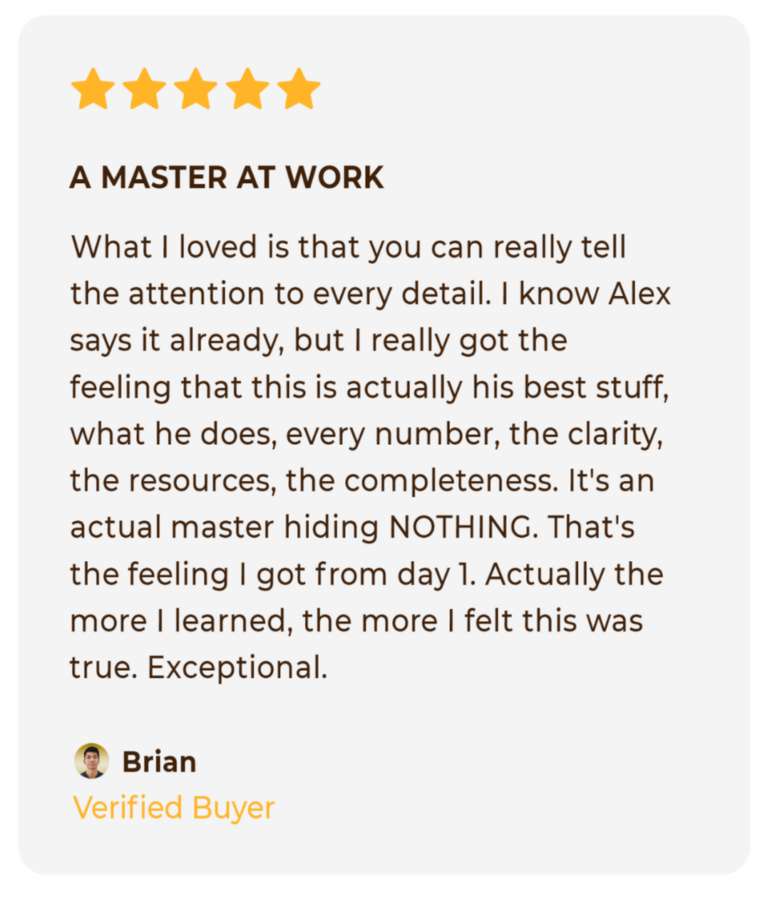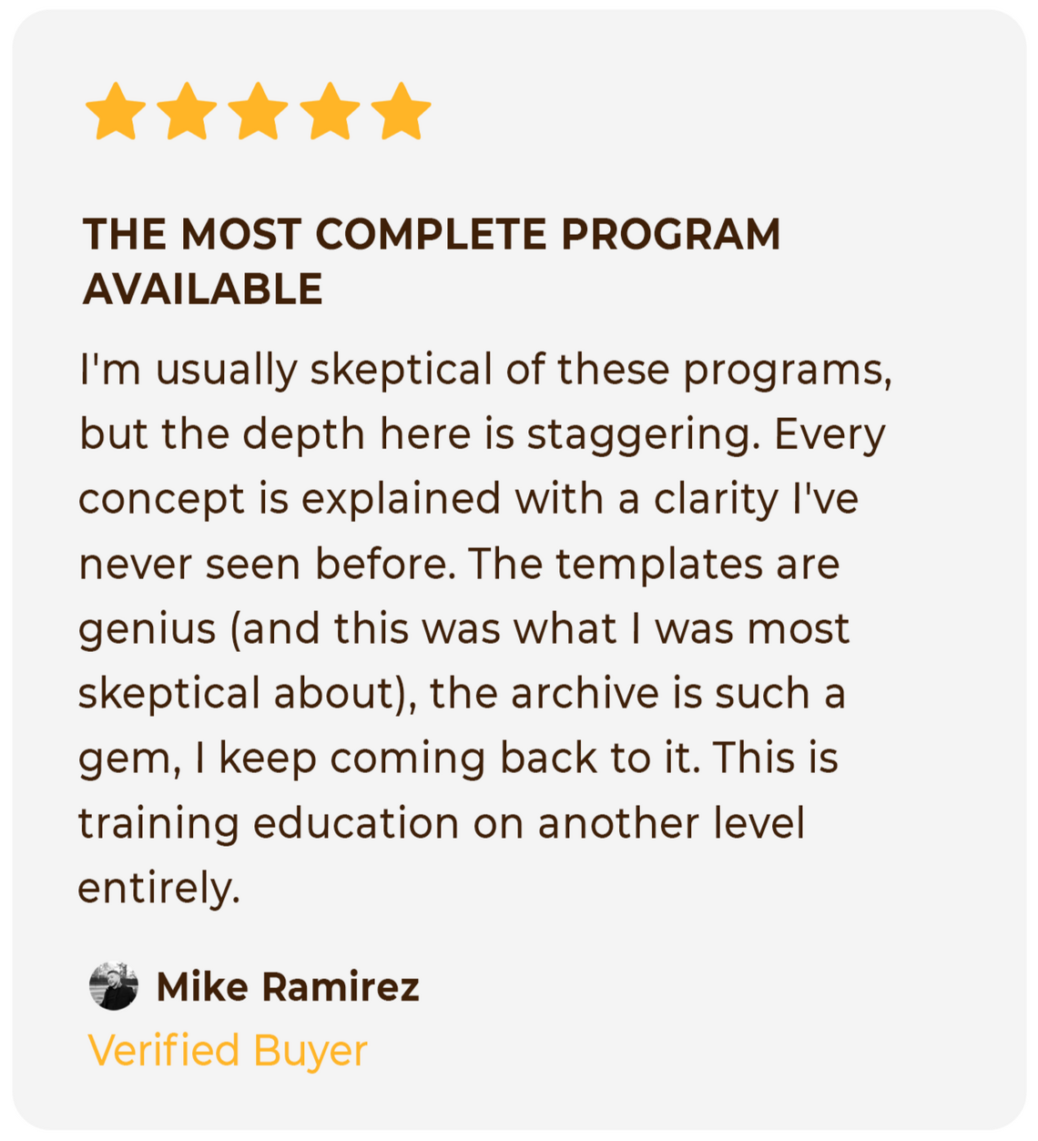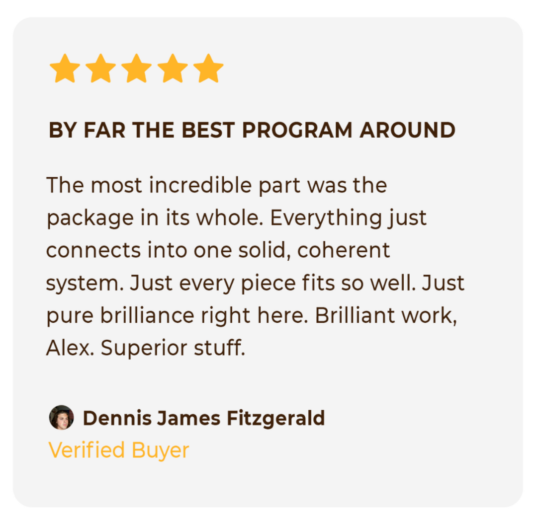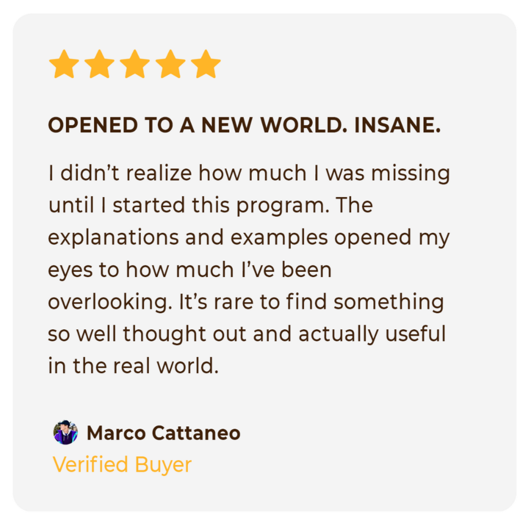 There's a lot of noise out there, with new programs popping up every week claiming to be the best. But talk is cheap.Here's the deal: Don't just take my word for it. Dive into the entire course and create your personalized program to get a true taste of it. Learn the principles, explore the tools, and test out everything I've created.If you created and shared your personalized program and still feel like you didn't get at least 5x the value you paid for, just email me within 60 days of your purchase.