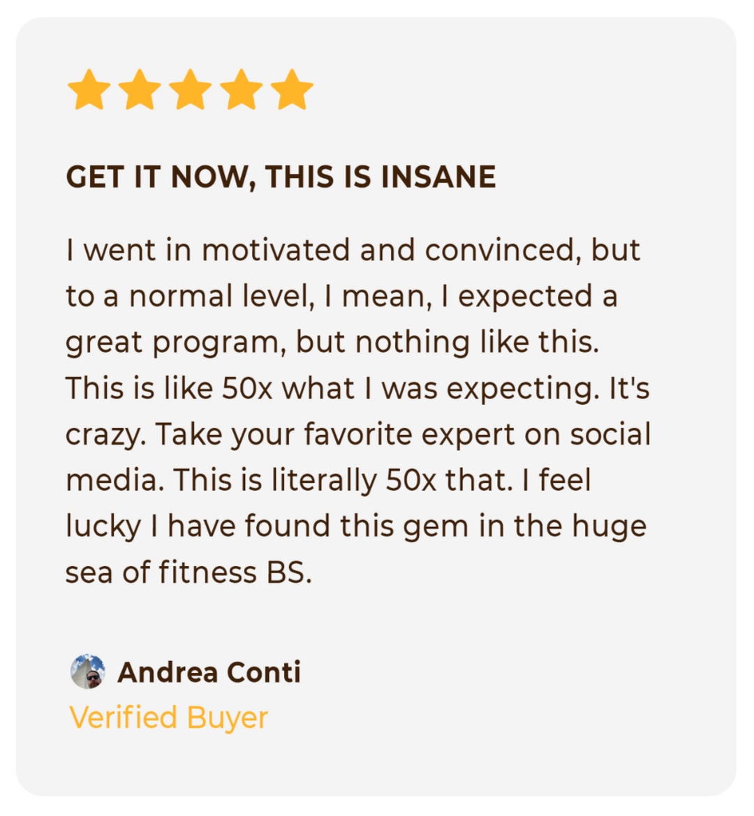 ● Theory to mastery: You’ll build a complete program (one that's very hard to top), not just watch me explain one.● My personal review: Once your program’s ready, I’ll go through your work myself and give straightforward, expert-level critique to take it further.● Transformation is inevitable: I don't care if you're skinny, fat, young, old, intermediate, advanced. When you do things the right way, your muscles have no choice but to grow.